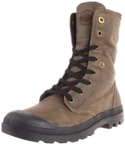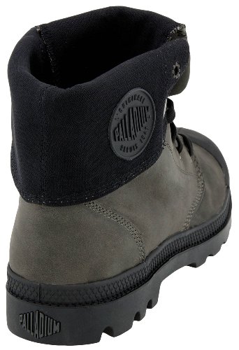 Studio : Palladium Publisher : Palladium Binding : Apparel Product Description Get easy rugged and urban design with the Palladium Baggy Leather Men. This men's boot features a full grain leather upper for comfort and durability. You can wear it up or with the collar folded down to show off the lining. Snaps secure the cuff when it's folded down. The seven-eye lace up front provides an optimum fit. This Palladium boot also has a molded rubber outsole. Show off two great looks in the Palladium Baggy Leather Men. 0