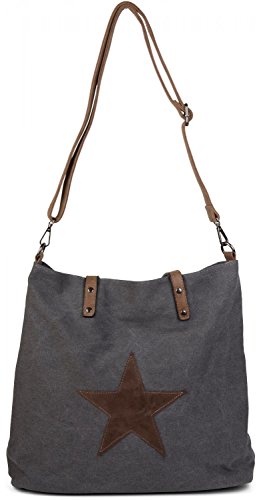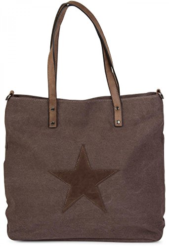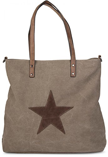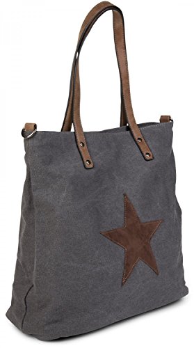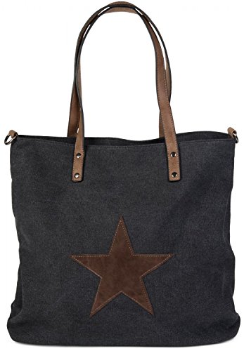 -. Title : styleBREAKER Canvas Shopper Handtasche mit aufgenähtem Stern, Schultertasche, Umhängetasche, Damen 02012048