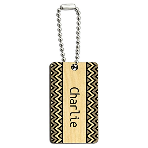 (Graphics and More)/Accessories/Wallets, Money Key Organizers/DIRECT FROM USA/Charlie Black and Grey Chevrons Wood Wooden Rectangle Key Chain
