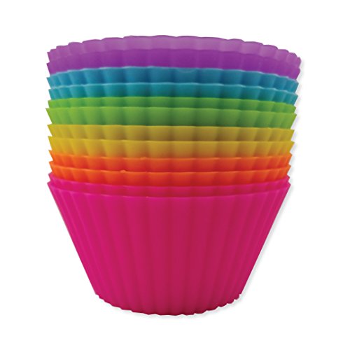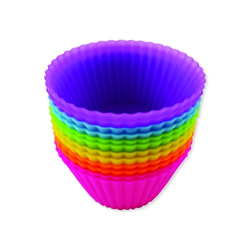 Crow Peak Supply Reusable Standard Size Cupcake Liners 12 Pack - Bento Box Dividers - Chocolate molds - Silicone Nonstick Baking Cups - Muffin Wrappers