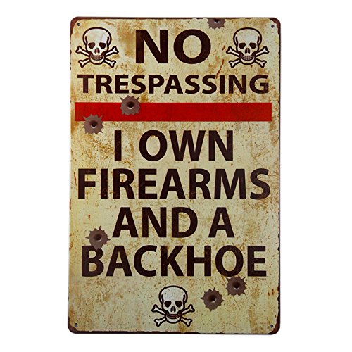DL-Vintage Metal Gun Sign No Trespassing Firearms Sign-I Own Firearms And A Backhoe