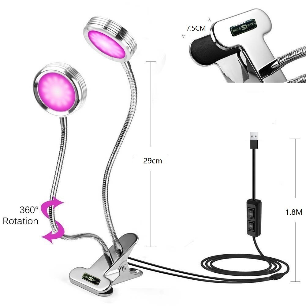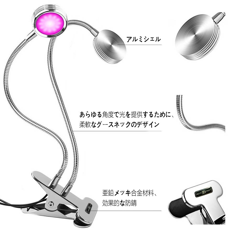 Ten balls of blue LED lamp beads: Beads emitting blue light with a wavelength of approximately 460 nm are important for leaf chlorophyll and carotenoid blu-ray, which promotes leaf growth with good photosynthesis.