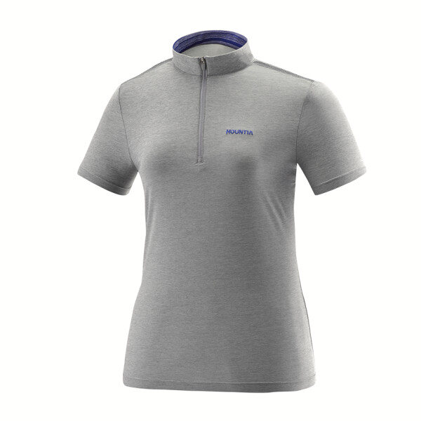 고밀도 냉감소재를 사용한 반팔티셔츠로, 옷깃 안쪽에 스트라이프로 포인트 준 제품