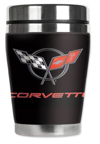 Mugzie Corvette C5 Logo "Mini" Travel Mug with Insulated Wetsuit Cover, 12 oz, Black