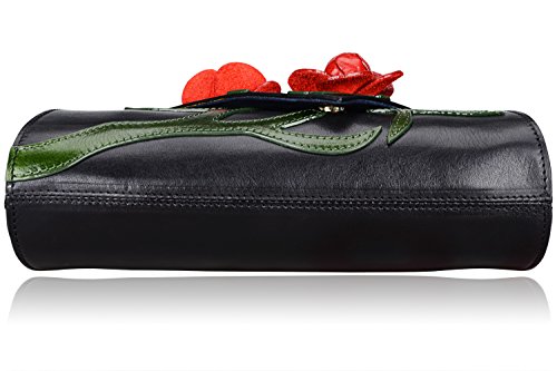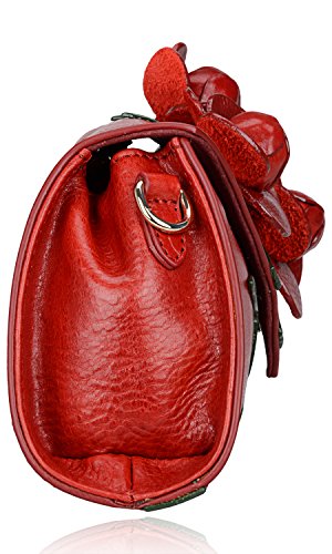 -. Feature : 100% leather, Floral Collection / Lining fabric,Magnetic flap closure / L 12" x H 6" x W 3.5" weight: 0.75kg, / 2 shoulder drops, 54"and 21.5" , can be used as clutch bag, shoulder bag or cross body handbag / Large Space for your storage, 2 open pocket on one side and a zipper pocket on the other side for storage.