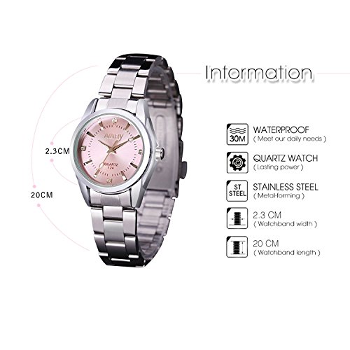 Brand, Seller, or Collection Name:cofuo Model number:CF-124-P Part Number:CF-124-P Item Shape:Round Display Type:Analog Clasp:Fold-over-clasp-with-double-push-button-safety Case material:Stainless steel Case diameter:0.91 inches Case Thickness:0.28 inches Band Material:Stainless steel Band length:Women's Standard Band width:0.55 inches Band Color:Silver Dial color:Pink Special features:World time Item weight:1.60 Ounces Movement:Analog quartz Water resistant depth:30 Meters