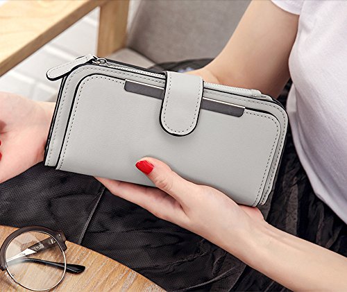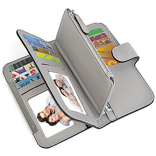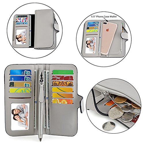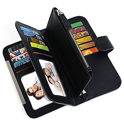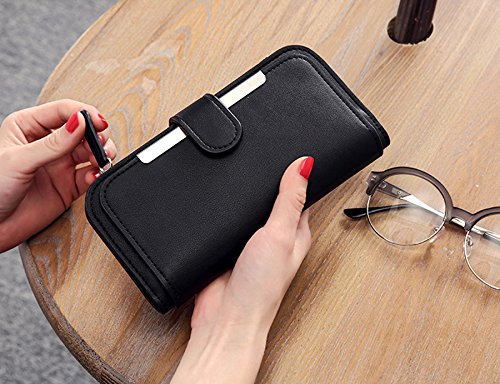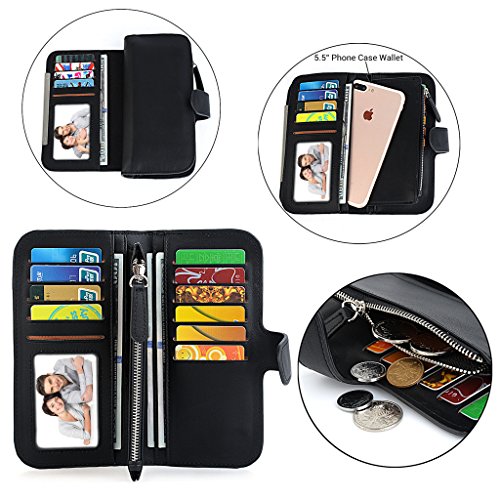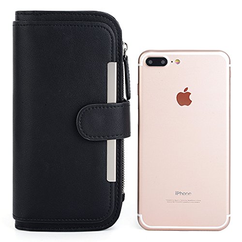 -. Feature : Soft synthetic leather with snap closure design, safe and easy to use. / Detailed streamlined stiching. Full-lined polyester lining. / This wallet contains 16 card slots, 4 bill sections, 1 5.5" phone holder(without case) and 1 zipper coin/changes pocket. / Comfortably holds your credit cards / ID card / bills / checkbook / 5.5" smartphone and under, like iPhone 7 plus/6 plus/7/6s/6/5s/se, HTC 10, LG G5/G2/K3, Sony Xperia XZ/Z5. Perfect gift for teen girls/mother/wife/girl friend. / Dimensions: 7.48"L x 0.98"W x 3.85"-7.87"H.