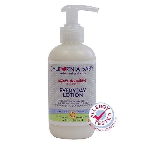 Studio : California Baby Publisher : California Baby Binding : Health and Beauty Product Description Product description: California Baby®'s luxurious Super SensitiveTM Everyday Lotion is perfect for those with allergies or fragrance intolerance or who are following a homeopathic regime. In addition to being free of fragrance or scent-masking agents, this hypoallergenic lotion does not contain any gluten, soy, oat, dairy or nuts except for coconut (seed of a drupaceous fruit), which is not typically restricted in the diets of people with tree nut allergies. Vitamin E and aloe vera are infused into high quality, cold pressed vegetable oils that are non-greasy and absorb quickly to create a silky smooth lotion that leaves the skin with a long-lasting satiny finish - an excellent bed or naptime lotion. Keep skin healthy and make this part of an after shower or bath routine. Our custom pump locks in the 'up' position making this lotion perfectly portable in a diaper bag, gym bag, or backpack without worrying about a mess. 0