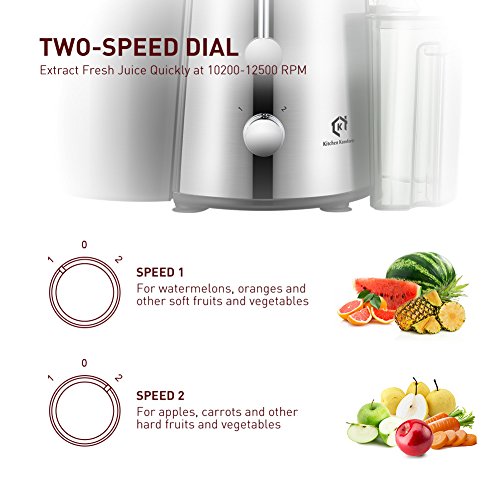 DUAL-SPEED SETTINGS: Designed with high and low 2-speed settings; low speed is great for soft fruits and vegetables such as watermelons, oranges and more; use the high speed for harder fruits and vegetables like carrots and apples