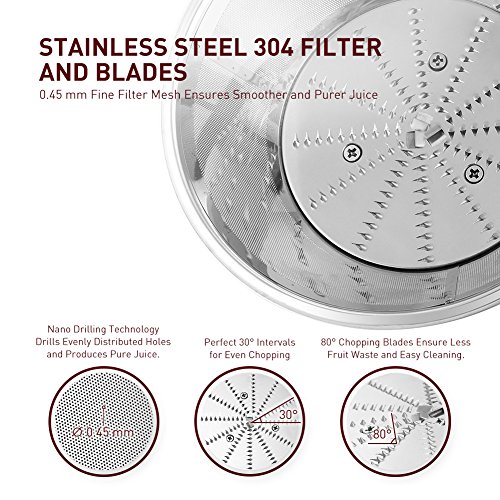 Gets the Most Out of Your Fruit The inside mill has been designed with more teeth to chop up food more efficiently, allowing thorough separation of the pulp and juice.