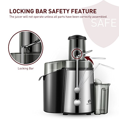 SAFETY LOCKING BAR: Features locking bar safety function; the juicer will not start unless the appliance and all its parts have been correctly assembled; avoids any potential danger to offer you and your family 360-degree protection
