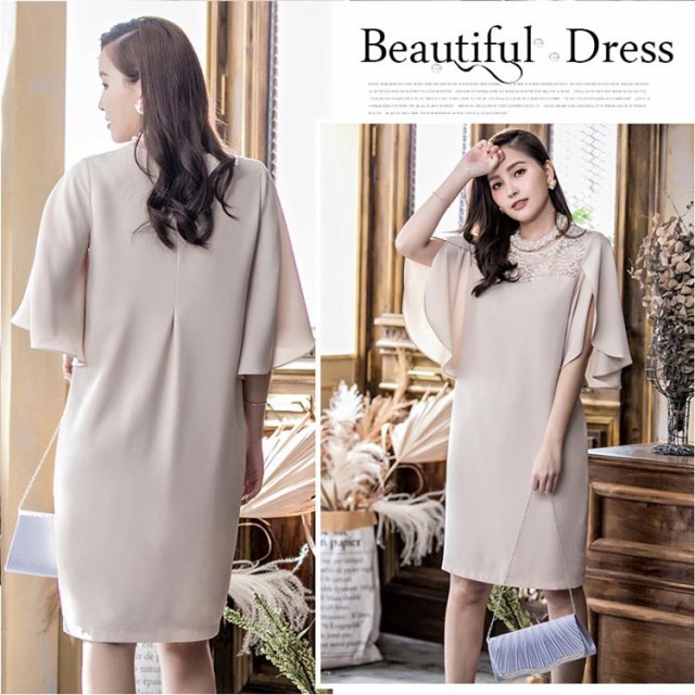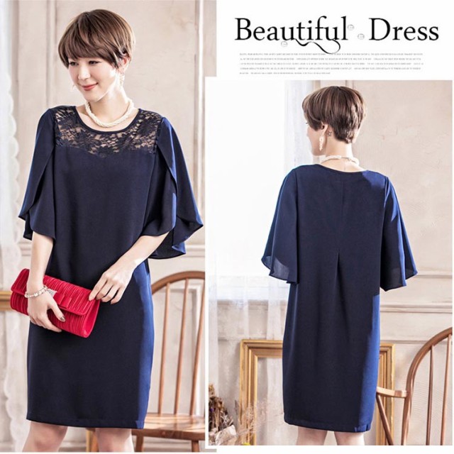 体型を選ばないゆったり着こなす大人可愛いドレスワンピース!花柄レース切替デザインがオシャレ度UP! 大きく広がり袖は気になる二の腕をさり気なくカバーしてくれます! 出かけ、通勤、パーティードレス、披露宴、入学式、入園式、卒業式、オシャレに着こなす!S:着丈93 バスト90 ウエスト92 肩幅36 ヒップ96 袖丈35M:着丈94 バスト94 ウエスト96 肩幅37 ヒップ100 袖丈36L:着丈95 バスト98 ウエスト100 肩幅38 ヒップ104 袖丈372L(XL):着丈96 バスト102 ウエスト104 肩幅39 ヒップ108 袖丈383L(2XL/XXL):着丈97 バスト106 ウエスト108 肩幅40 ヒップ112 袖丈39モデル身長165cm Sサイズ着用素材:100%ポリエステル伸縮性:なし裏地:あり
