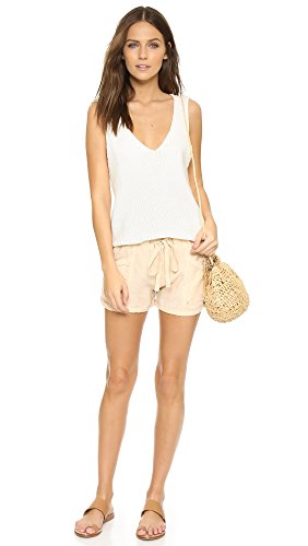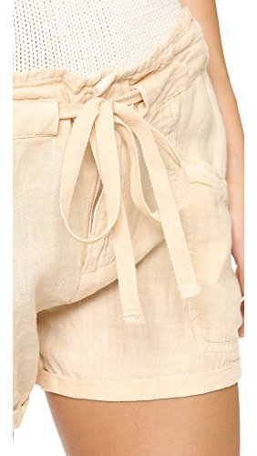 Lightweight linen Blank Denim shorts, styled with a thin, fixed cuff. Slant hip pockets and welt back pockets. Drawstring waist. Hook-and-eye closure and zip fly.