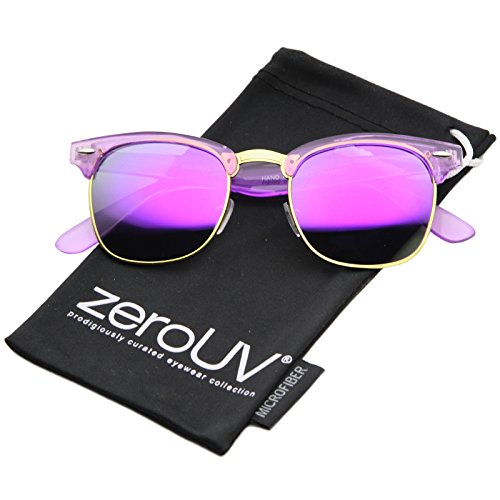 -. Title : zeroUV - Classic Transparent Frame Color Mirror Square Lens Horn Rimmed Sunglasses 49mm