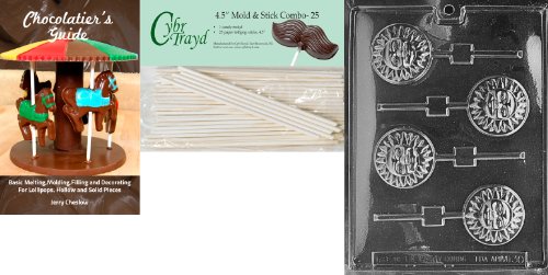 Cybrtrayd 'Sun Lolly' Miscellaneous Chocolate Candy Mold with 25 4.5-Inch Lollipop Sticks and Chocolatier's Guide