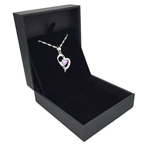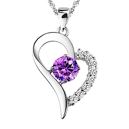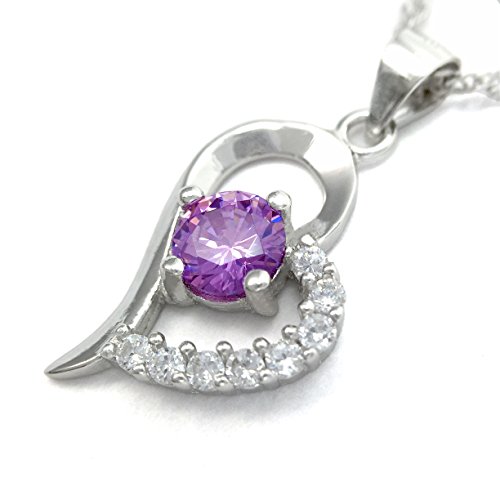 Made of solid sterling silver, this necklace contains a brilliant cut cubic zirconia stone and eight accents on the heart-shape pendant. The heart resembling a "B", the necklace is particularly special for someone whose name starts with the letter or for anyone as a birthday gift. Our award-winning designer picked purple as the color of the central stone for the connotation the color holds. Purple combines the strength of red with the spirituality of blue, a union of body and soul creating a balance between our physical and spiritual energies. Inspiring high ideals, a jewelry with a purple stone is a great choice for someone special in your life, who is gifted with the power of imagination that inspires you to escape mundanity. The chain is 18'' long, perfect length for showing off a V-neck and to highlight the face. Durable and long lasting, the chain won't break even when a baby pulls on it. She'll love how the ripple chain looks and enjoy how it feels laying beautifully on the neck. Add the great necklace to your cart now. The moment she puts it on, she'll feel like the Belle of the Ball on her wedding day.Feature