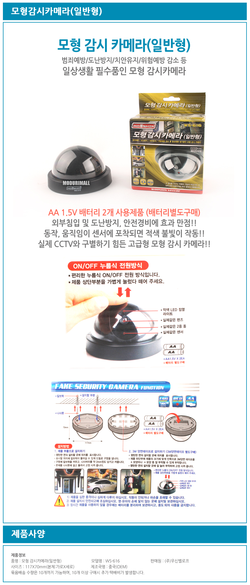 - 품명 및 모델명모형감시카메라일반형 WS-616