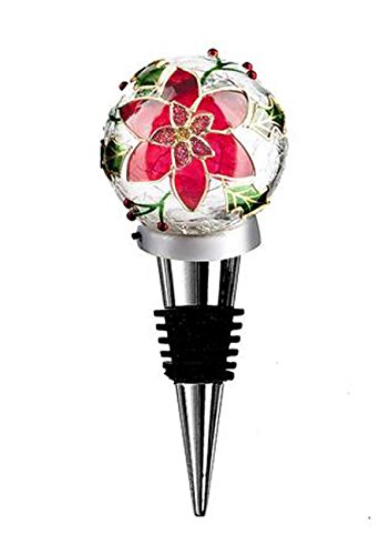 Product Description Tis the season to give and be joyful! ; Pointsettia bottle topper; Clear glass sphere with a Pointsettia design; Great for keeping a bottle of wine fresher longer; Lights up; Measures 5in (12.5cm) long 0