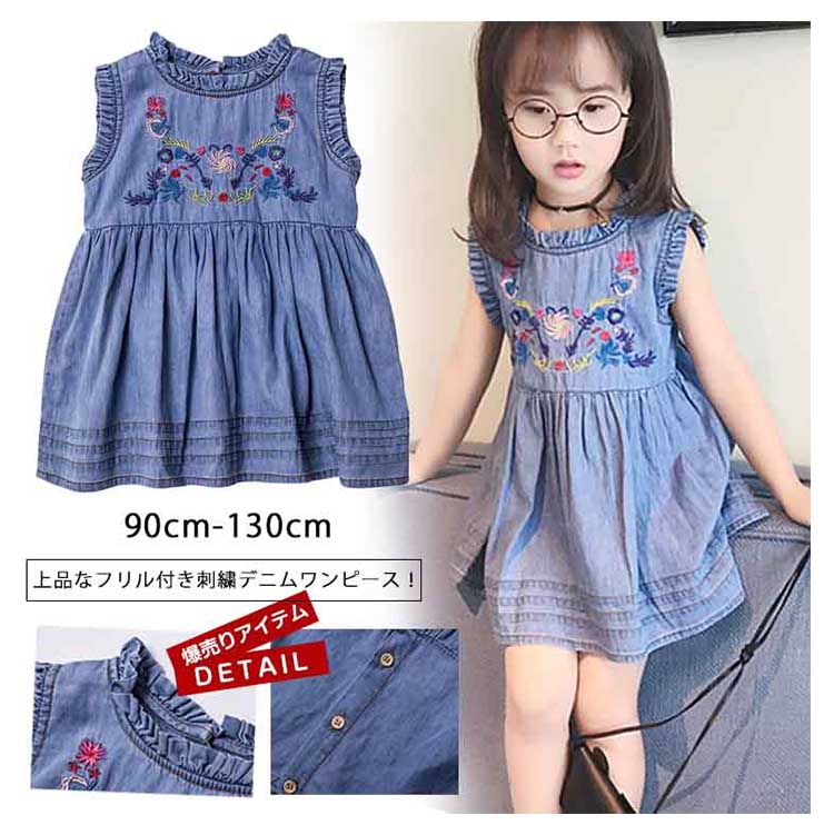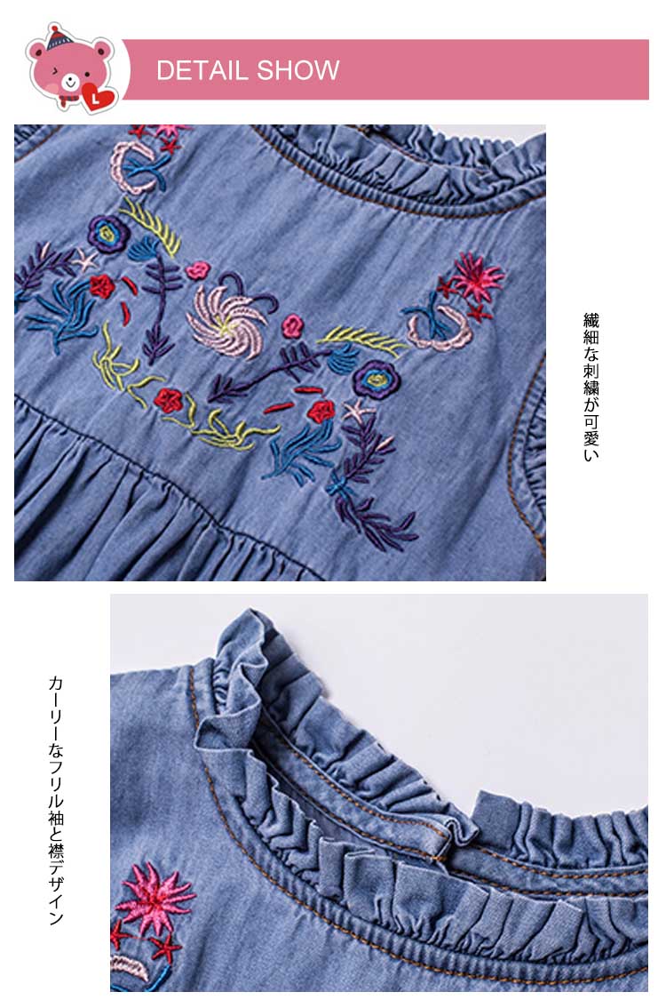 | 上品なフリル付き刺繍デニムワンピース!襟と袖ところはフリルをあしらったデザインがガーリーな着こなし上品な生地で仕上げたデニムワンピースが、この夏をお洒落で涼しく楽しもう裾配色ステッチなどディテールにもこだわったオシャレなデニムワンピースです | |