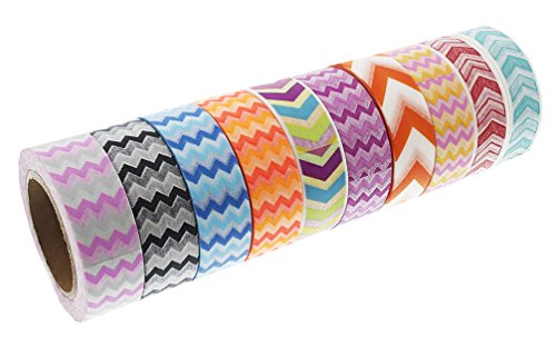 - BEAUTIFUL DESIGNS: Set features washi tapes with chevron designs in assorted colors of red, purple, blue, green, orange, pink, and more!