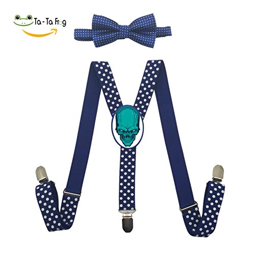 (Sans Bendy's Suspenders)/Accessories/Suspenders Cummerbunds/DIRECT FROM USA/Custom Skulls Illustrations Y-Back Clip Suspender with Bowtie Set Adjustable for Kids