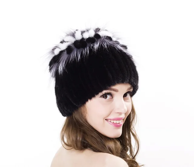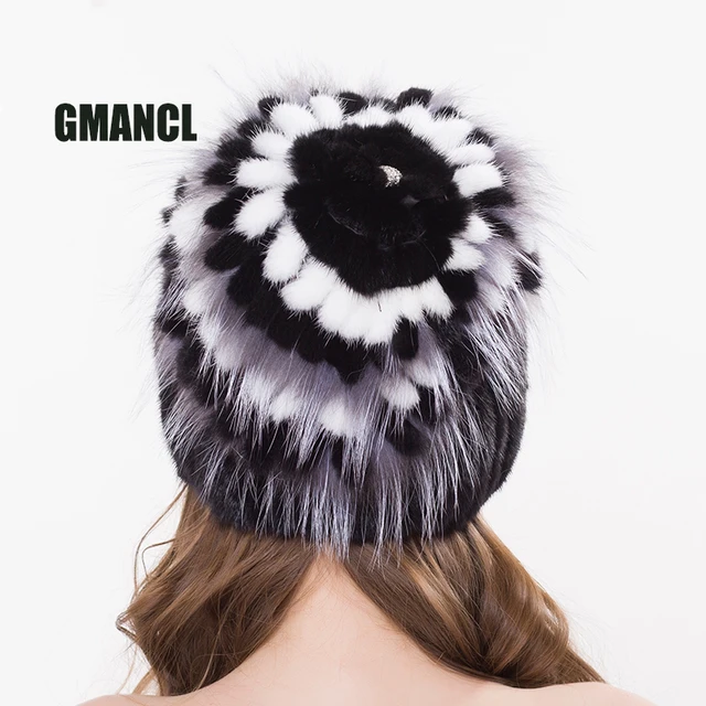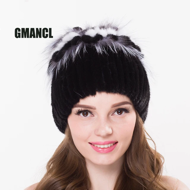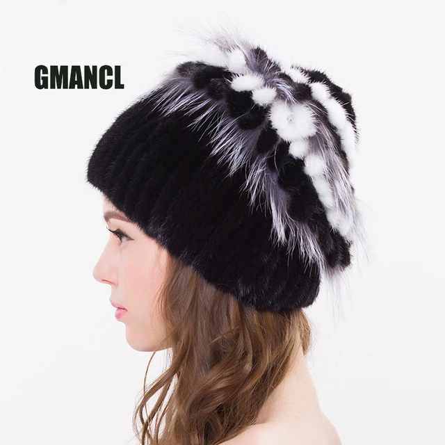 [해외]GMANCL 진짜 밍크 모피 귀 모자 여성 겨울 모자 탄성 블랙 패션 캐주얼 정품 전체 밍크 여자 Skullies & 비니