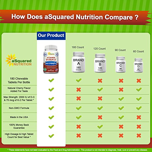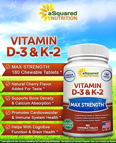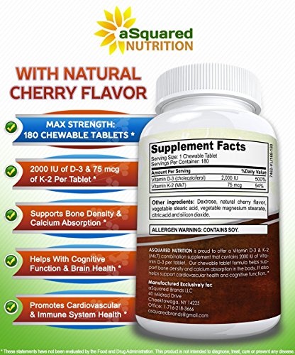 · 500% of Daily D3 and 94% of Daily K2 in Each Cherry-Flavored Tablet *