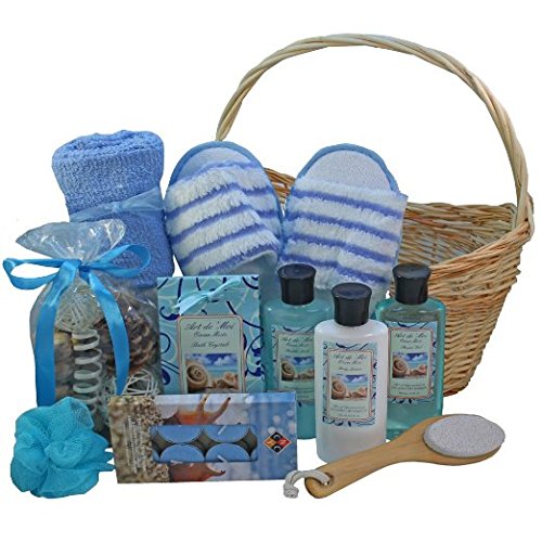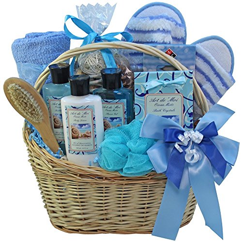 -. Binding : Grocery -. Brand : Art of Appreciation Gift Baskets -. Color : Blue -. EAN : 0689466107364 -. Feature : Cleverly captures the feel of the ocean / Scent the air around her with fresh, clear Ocean Breeze Potpourri and add a shell studded candle to softly light the room / Each gift is carefully hand crafted with attention to every detail, tied with ribbons and includes a personalized gift message from you -. IsAdultProduct : 0 -. Label : Art of Appreciation Gift Baskets -. Manufacturer : Art of Appreciation Gift Baskets -. MPN : na -. PackageQuantity : 1 -. PartNumber : na -. ProductGroup : Grocery -. ProductTypeName : GROCERY -. Publisher : Art of Appreciation Gift Baskets -. Studio : Art of Appreciation Gift Baskets -. Title : Art of Appreciation Gift Baskets Ocean Mists Spa Bath and Body Gift Set -. UPC : 689466107364