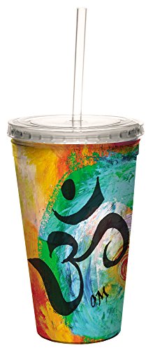 Tree-Free Greetings 35490 Sansaara Om Double-Walled Cool Cup with Reusable Straw, 16-Ounce