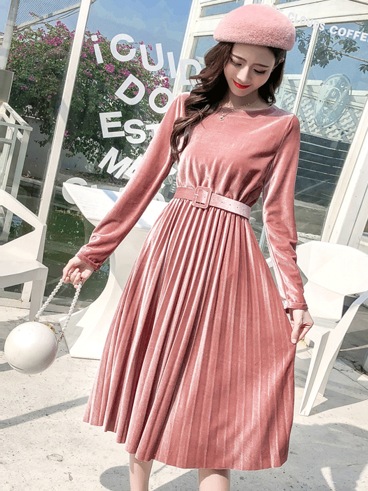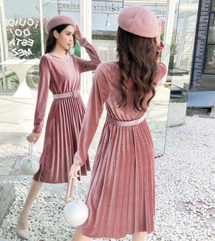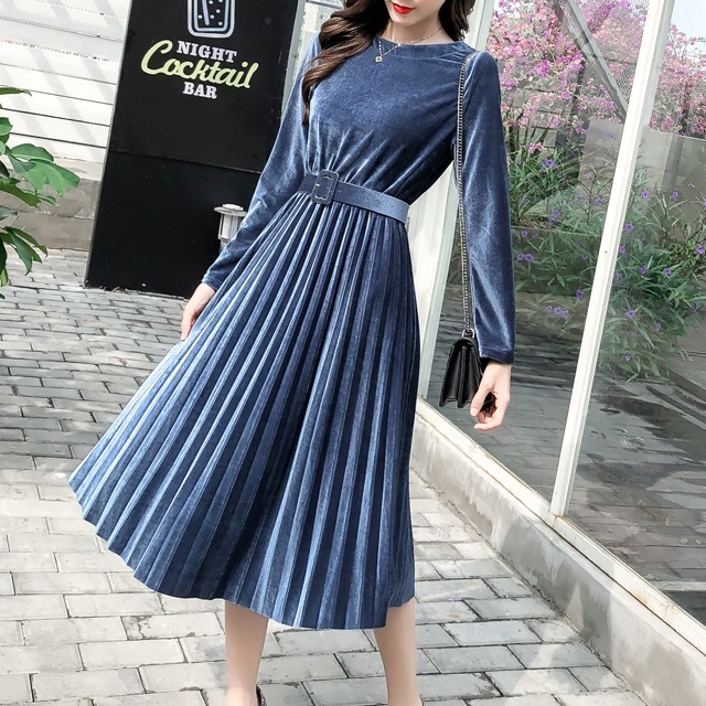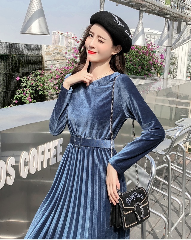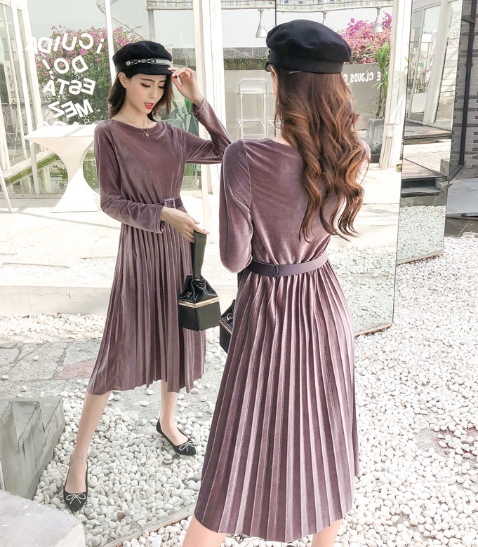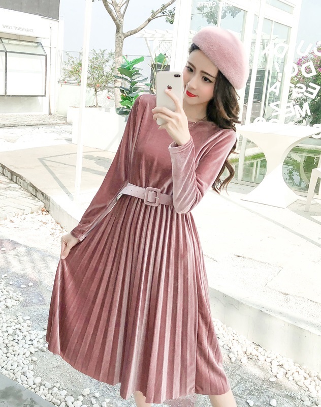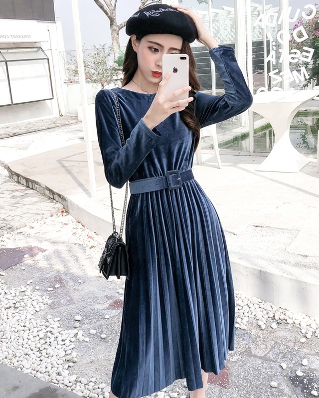 ベルベット×プリーツの掛け合わせがトレンドライクなきれいめワンピース。