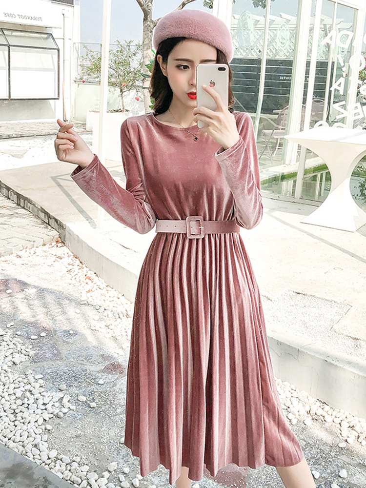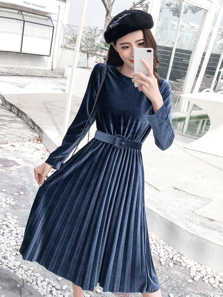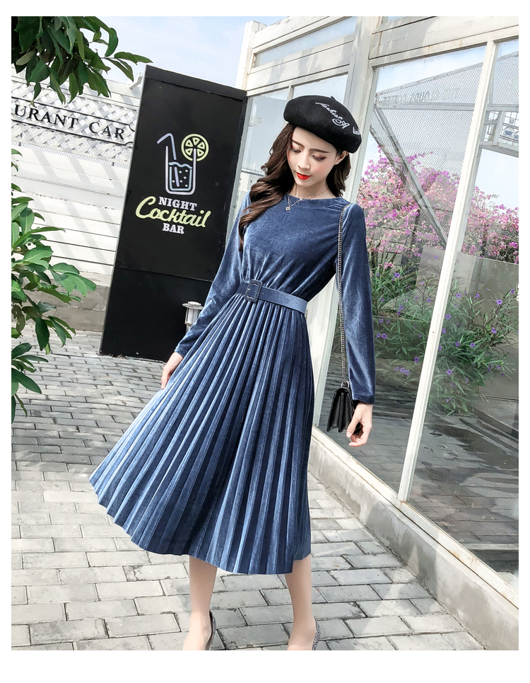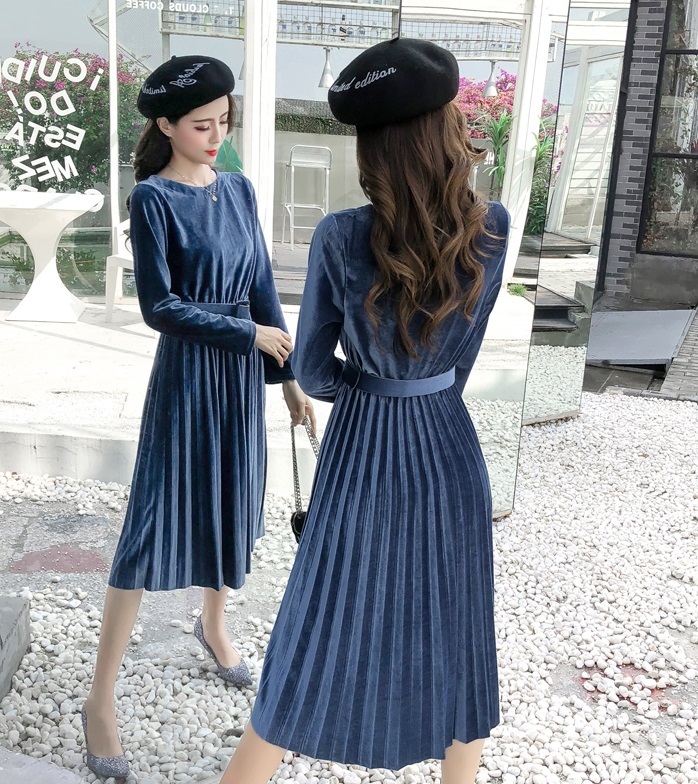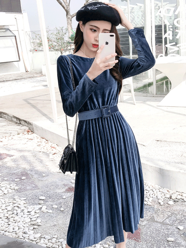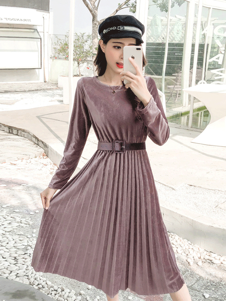 ベルベット×プリーツの掛け合わせがトレンドライクなきれいめワンピース。