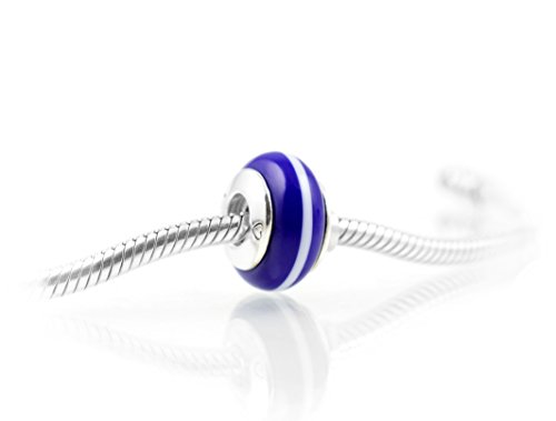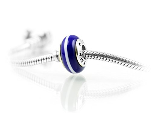 -. Feature : Stamped EMS / Threaded Core for Added Security / Fused Cobalt Blue and White Italian Glass for Durability / Fits , Biagi, Chamilia, Kay Jeweler, Charmed Memories Bracelets and Many More! / Shipped with a Keepsake Box