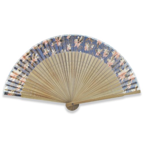 Bamboo Folding Fan - Butterfly Flower Design in Dark Blue - Natural