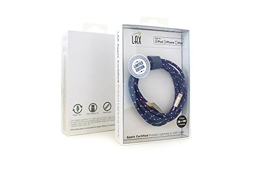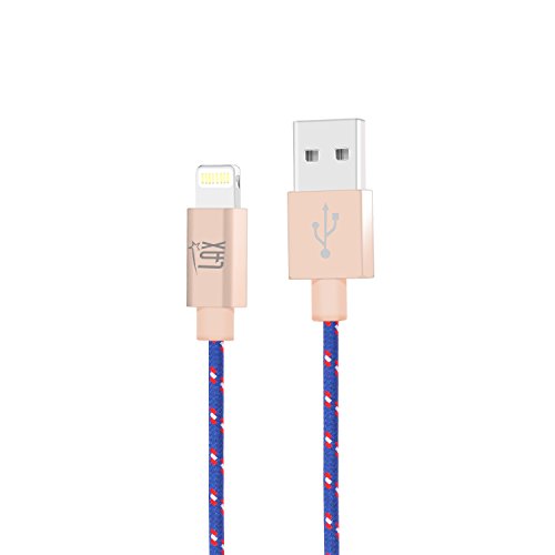 LAX Gadgets Extra Long 2in1 Apple MFi Certified Nylon Lightning Cable Cord | 6 Ft - Blue/Red