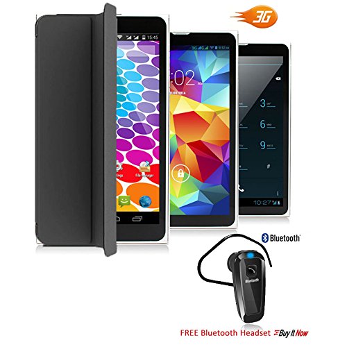 -. Feature : 7.0 inches Android 4.4 Kitkat 3G Phablet 2-in-1 Tablet PC + GSM Wireless SmartPhone (Call as mobile phone) with FREE Smart Cover Case Built-in, Google Play Store and HD Capacitive Multi-Touch Screen / GSM Mobile Cell Phone - Support 3G GSM QuadBand: GSM 850/900/1800/1900MHz WCDMA 850/2100MHz|Make and receive calls directly from the tablet itself with the built-in MIC and speaker / Powered by MTK MT8312 DualCore Processor 1.2GHz CPU, 8GB Internal Memory, Latest Android 4.4 Kitkat Operating System, Integrated 802.11 b/g/n, Bluetooth, Dual-Camera, Dual Sim and more. / WiFi 802.11 b/g/n Support - Connect to internet for A full Internet experience | Bluetooth enabled - connect to any bluetooth headset handsfree / Support Google Play Store and preinstalled - access to millions of free and paid-for applications available to download straight to your Smartwatch