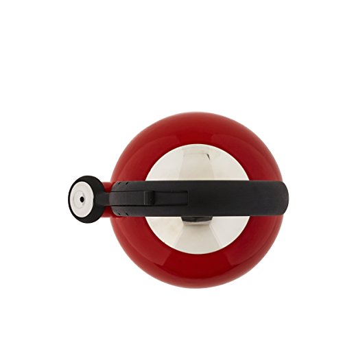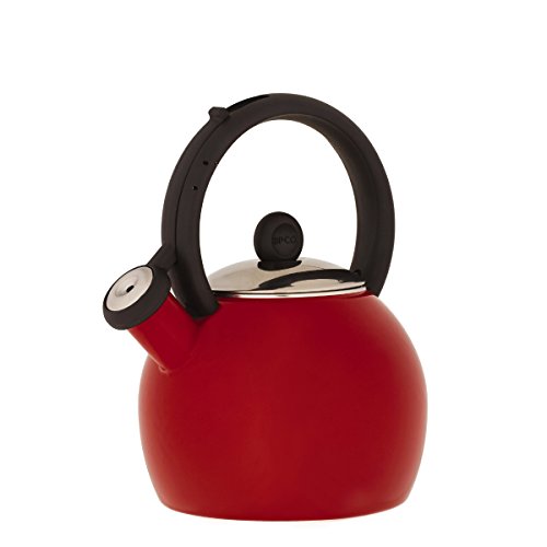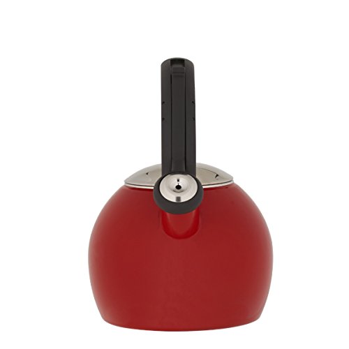 Durable porcelain enamel finish. One-hand slide bar mechanism lifts whistle for safe and easy pouring. Full loop handle for comfort and stability. Interior and exterior finishes are easy to clean. 1-1/2-quart (6-cup) capacity