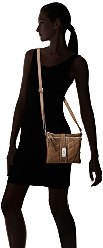Diamond-quilted cross-body bag in faux leather featuring split body, gusseted interior, and turnlock clasp