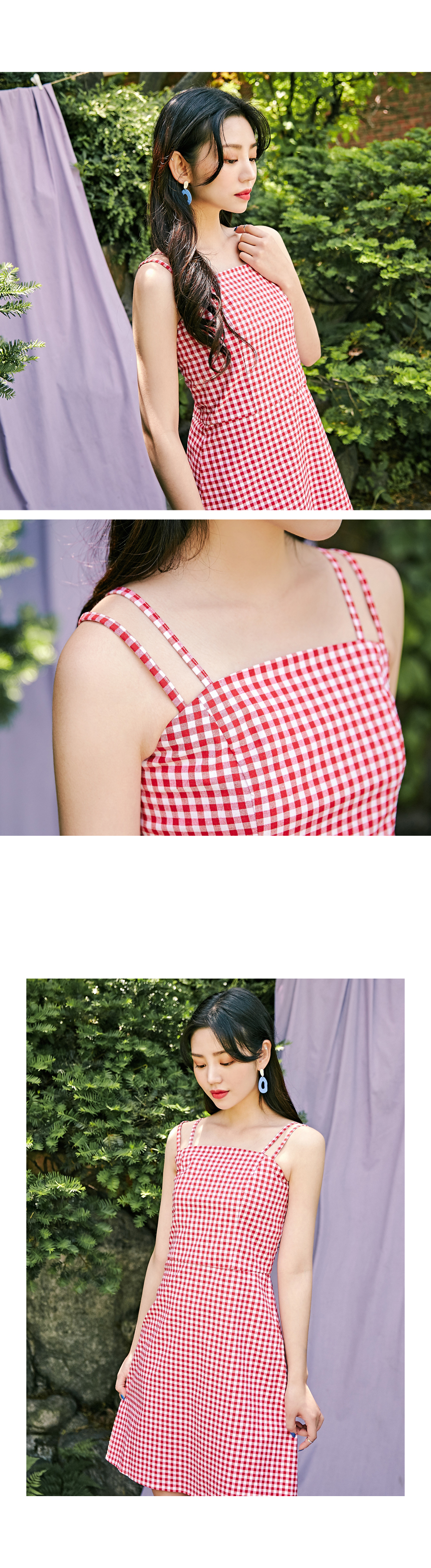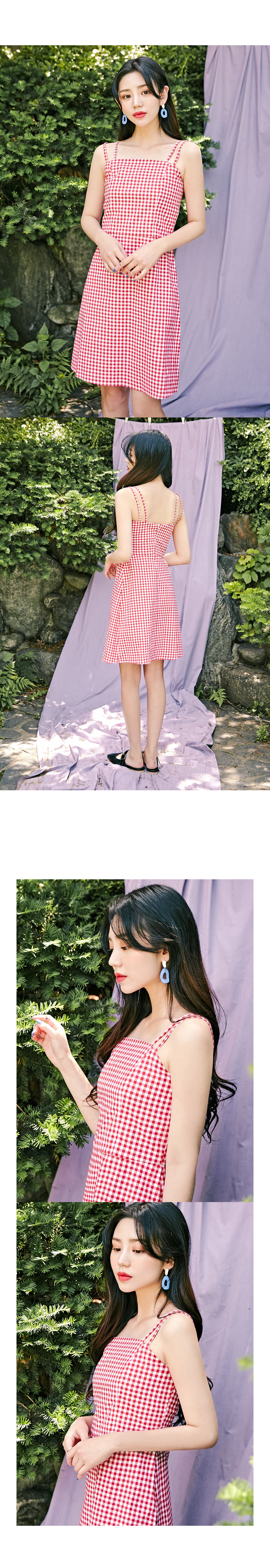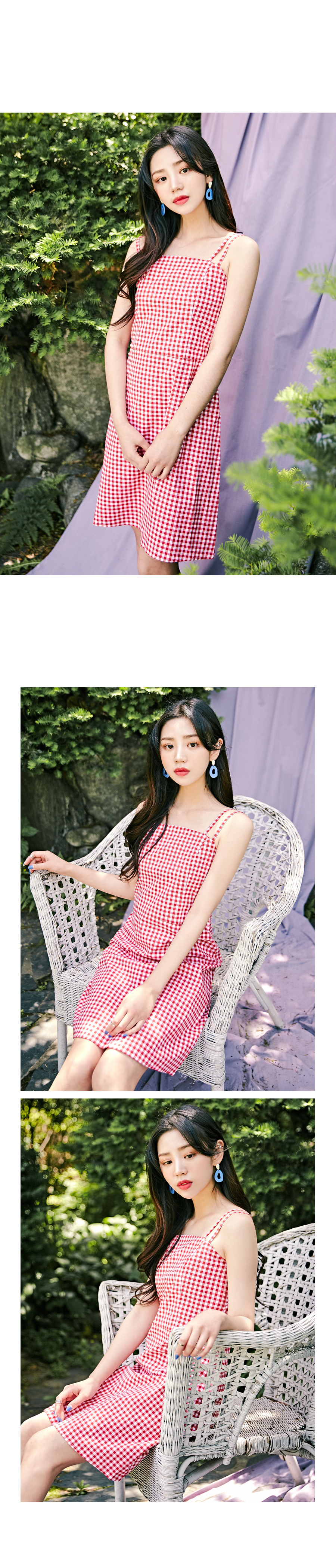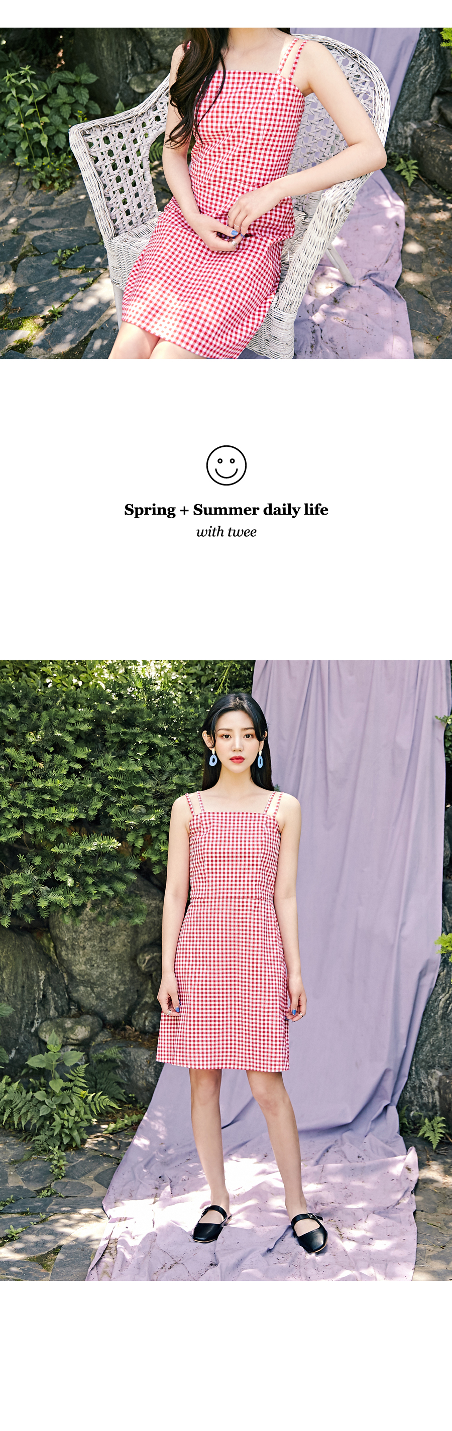 MD COMMENT" 트위만의 자체제작인"여리여리하면서도 걸리시한 무드의 체크원피스 입니다 얇은 어깨끈이 여리여리한 상체라인을 돋보이게 해주는 디자인으로 잘록하게 허리라인을 강조해예쁜 바디라인을 만들어주는 원피스에요 귀여운 고방체크 패턴으로 시선을 톡톡히 사로잡아 여름시즌 휴가지와도 정말 잘어울리는 아이템이에요 !