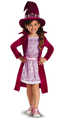 -. Binding : Apparel -. Brand : Disguise -. Color : As Shown -. Department : girls -. Feature : Includes dress with attached jacket and matching wizard hat. / Shoes are not included. / Available in sizes Toddler (2T), Toddler (3T-4T) and Kids Small (4-6). / Includes a star-P.R.Inted pink dress with attached fuschia jacket and matching fuschia character wizard hat. -. ProductGroup : Apparel -. ProductTypeName : DRESS -. Title : Evie Kids Costume