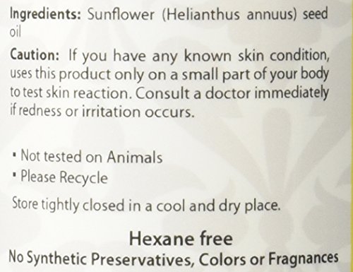 -. Binding : Misc. -. Brand : Beauty Aura -. EAN : 0810180020374 -. Feature : • Beauty Aura 100 % Pure Sunflower oil is cold-pressed from Sunflower seeds / • Deep moisturizing oil, helps balance the moisture in your skin making it a wonderful natural moisturizer suitable for all skin types / • This is a Oleic variety; as a result of the oils higher Oleic acid content it is more stable and resistant to oxidation and a wonderful natural moisturizer suitable for all skin types / • Hexane Free, Chemicals Free, Synthetic Ingredients Free / • Refined to ensure purity. Tested to ensure Highest Quality • Made in USA -. Label : Beauty Aura -. Manufacturer : Beauty Aura -. MPN : 810180020374 -. PackageQuantity : 1 -. PartNumber : 810180020374 -. ProductGroup : Beauty -. ProductTypeName : BEAUTY -. Publisher : Beauty Aura -. Studio : Beauty Aura -. Title : Beauty Aura 100% Pure Sunflower Oil, 16 Fl Ounce -. UPC : 810180020374