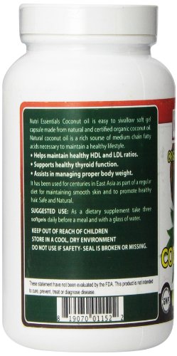 - Title : Nutri Essentials Extra Virgin & Organic Coconut oil 3000 mg per Serving 180 Softgels