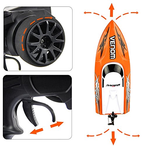 Features: UDI001 2.4G wireless remote control boat with water cooling system remote control speedboat ship model USB charging toy boat Product Code: UDI001 Product Description: Remote control boat Product Material: ABS Product size (Approx.): 32.4 * 8.9 * 8.8cm/12.76 * 3.50 * 3.46in Function: full-scale forward, backward, left / right turn, turn over can be remote control led to turn to the original state. Low voltage reminder: speed 20KM / hour, with motor water-cooling system, comes with water plate, water sensing protection. Playing time: 7 minutes Charging time: 150 minutes Remote control mode: 2.4G Remote control distance (m): remote control distance of about 100M/328.08ft Number of drive motors: Motor 1pc Actuator 1pc Battery Details: 7.4V / 600mAh lithium battery Charging Details: USB Automatic protection function: No Packing List: remote control boat * 1, remote control * 1, battery * 1, USB charger * 1, display frame * 1, screwdriver * 1, spare propeller * 1, manual * 1 0