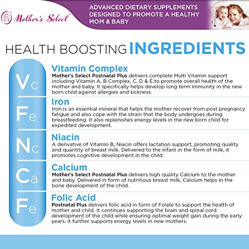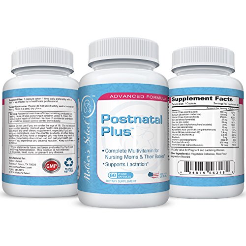 -. Binding : Health and Beauty -. Brand : Mother's Select -. EAN : 0804879563181 -. Feature : POSTNATAL PLUS; specially formulated to meet the enhanced nutritional needs of new mothers who are breastfeeding and lactating, our Postnatal Plus contains a wide spectrum blend of essential postnatal vitamins and minerals to support natural energy, lactation and guard against deficiencies! / SUPPORTS HEALTH; forget cheap postnatal multivitamins, our Postnatal Plus is formulated with Folate and Iron to support healthy red blood cell production for optimal health and to meet the daily demands and stresses of caring for a newborn! / WIDE SPECTRUM; formulated with a wide spectrum of essential vitamins and minerals including higher levels of vitamin D, Thiamin and B6 for breastfeeding, enhanced mood and natural energy! / LONG LASTING SUPPLY; each bottle of our Postnatal Plus provides 60 capsules for a long lasting, 2 month supply in gentle, non irritating, easily absorbed veggie capsules! / GUARANTEED QUALITY; manufactured in the USA in a GMP certified facility for guaranteed purity and quality in every bottle! Click the Orange Button to order now! -. Label : Mother's Select -. Manufacturer : Mother's Select -. PackageQuantity : 1 -. ProductGroup : Health and Beauty -. ProductTypeName : HEALTH_PERSONAL_CARE -. Publisher : Mother's Select -. Studio : Mother's Select -. Title : Postnatal Vitamins - Mother's Select Post-Natal Plus - 60 Veggie Capsules - 2 Month Supply - Designed to Support Breastfeeding & Lactating Mothers - With Vitamin D, Iron and Folate -. UPC : 804879563181