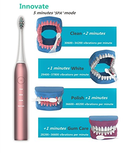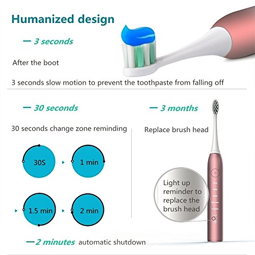 - Intelligent Reminder : 2 minutes smart timer with transitory pause every 30 seconds, 3 months reminder to replace the brush head helps you reach the brushing time and habits recommended by dentists.