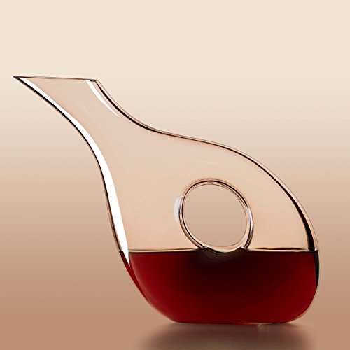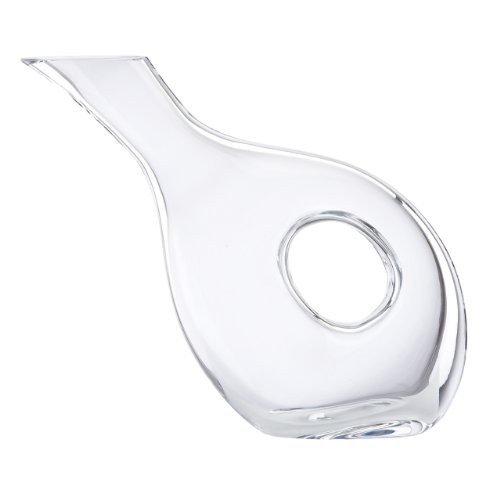 The round opening in this crystal decanter is more than just visually intriguing - it serves as an easy-to-grasp handle. Even the decanter's shape, leaning at an angle, is eye-catching. And the clear crystal allows you to look at the wine unobscured.