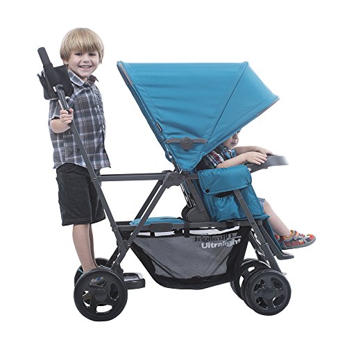 The lightest weight, most compact, and maneuverable double stroller available allows your older child to sit and stand on the rear platform or bench seat. 22 lbs
