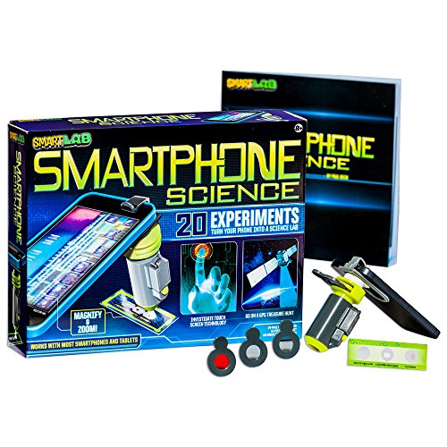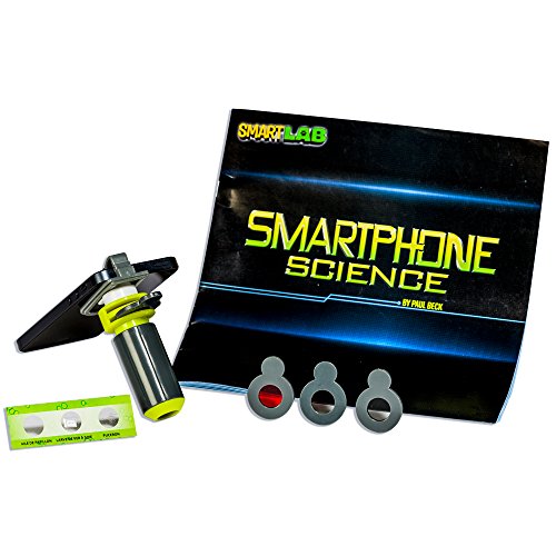 No apps to download! Turn your iPhone, tablet, or smartphone into a science lab! The 24-page book includes 20 experiments that explore the science behind touch-screen technology, use optical filters to explore the mysteries of light, and much more. The clip-on, light-up microscope allows young scientists to point, click, and share extreme close-ups of microscopic images.