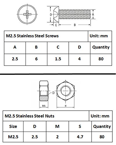 Guard4U 320Pcs M2.5 Male-Female Brass Spacer Standoff & Stainless Steel Screw Nut Assortment Kit