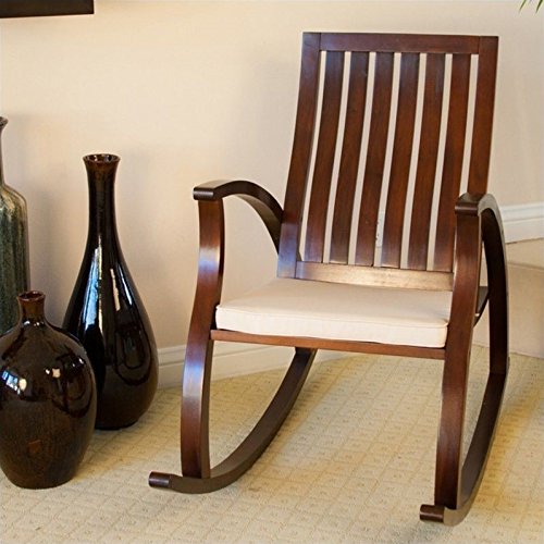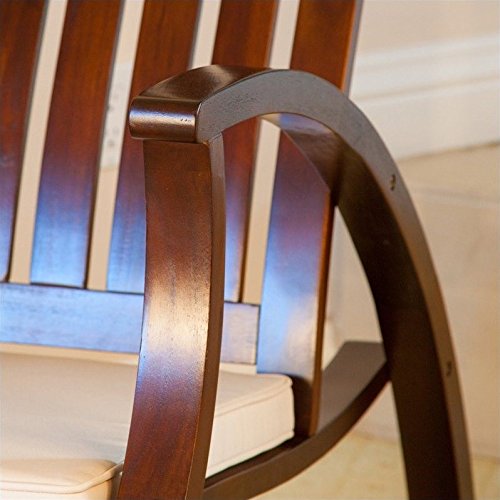 Studio : Noble House Publisher : Noble House Product Description The Angela rocking chair is an attractive piece built from soft brown mahogany wood with panel seat and backrest. This piece is equipped with plush cushions, creating a comfortable seating experience that can be placed in any room. Features: Color: brown mahogany Made of hardwood Panel seat and backrest Plush cushions High armrests for added support Weight capacity 250lbs Specifications: Overall Product Dimension: 42" H x 28" W x 25" D 0