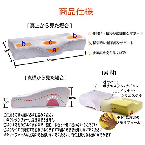 [Human design was based on the engineering] ergonomic design and unique cervical stick design, low-repulsion not a burden on the body, supports firmly the head, neck, shoulders. To provide more support in the cervical spine stick, which is designed to always keep a comfortable optimum posture shape. [Cervical care, reduce fatigue, sleep improvement] unique cervical stick design, head to when you go to bed, neck, to alleviate the pressure of the shoulder, it will be put to sleep quickly and comfortable. To provide more support in the cervical spine stick, overnight and cervical care, to reduce the fatigue, and a deep sleep help. [Foam Healthcare pillows, gently sleep disorder improving] can adjust the balance of early force at low resilience, homogeneously distributed stress, not squeezed blood vessels, the nerves so snugly fits the body, eliminating fatigue cervical comfortable and give it to sleep in. Well they absorb shock and vibration waves by sleep at the same time, not falling asleep if you use a long period of time, sleep shallow, eyes are likely to wake up, to loosen the disorder, such as rolling over. [Osshayoko Rakune, cervical relax] design based on ergonomics, concave three-dimensional form satisfies the Osshane and horizontal sleeping in demand at the same time. Smooth manner can turn over, surprised woke up, there is clearly effective in reducing Nechigae. If you sleep on his back, smooth breathing and keep the neck or cervical spine to a normal shape, snoring is reduced, we sleep in soundly nimble. If you sleep on its side, since the height of the shoulders fit the height of both sides, the cervical spine is supported firmly gently, shoulder, you can effectively improve the stiff neck not be compressed. [Note]: urethane foam of the medium can not wash. Please do not continue to use the color transfer and mold is wet because there is likely to occur. Memory foam, please do not bathed in the light of the sun, there is likely to be on the characteristics hard. Pillow sleep stiff neck measures sleep pillow sleep memory foam pillow support gently snoring prevention neck, head, shoulder health pillow cervical support headache improvement sideways corresponding